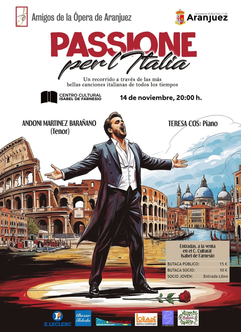 La Asociación Amigos de la Ópera de Aranjuez ha conseguido, no sin gran esfuerzo, este gran concierto para disfrute de sus abonados y melómanos de nuestra localidad.